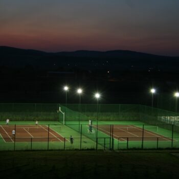 Apollo Wellness Club dispune de un teren de fotbal cu gazon artificial (65x45m), un teren de minifotbal (45x20m) și un teren de tenis cu teren de baschet.