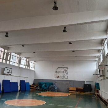 Sala de sport este rezervată copiilor care frecventează școala, care au ore de gimnastică în clădire.
