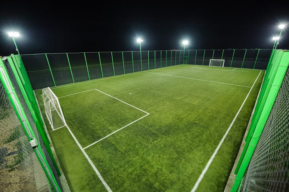 Apollo Wellness Club dispune de un teren de fotbal cu gazon artificial (65x45m), un teren de minifotbal (45x20m) și un teren de tenis cu teren de baschet.